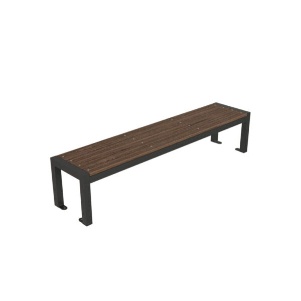 Banca sin respaldo de la línea Damero con madera plástica, con capacidad para tres personas.