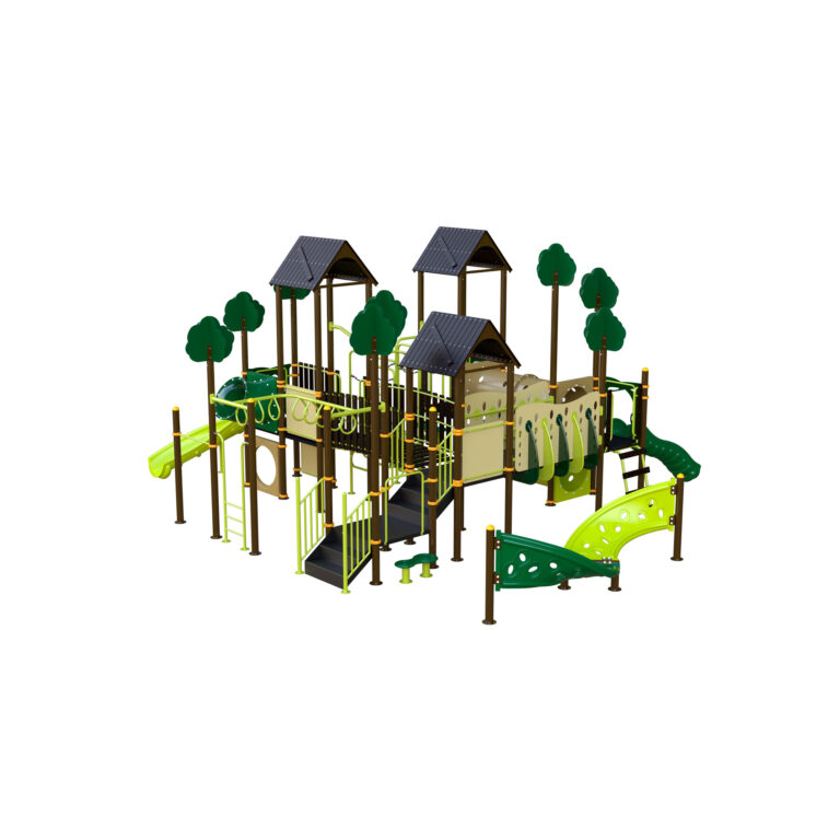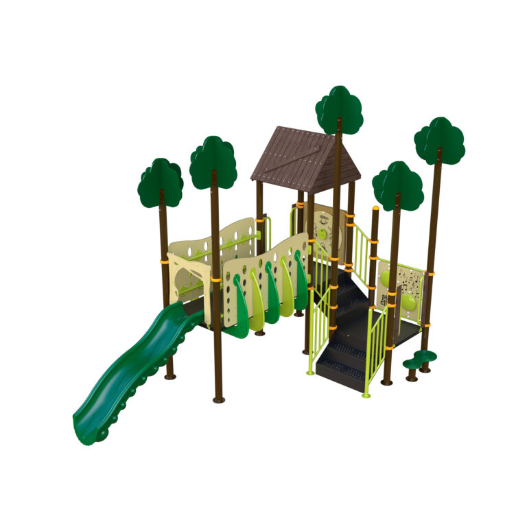 Juego premium especial que contiene; 1 resbaladilla recta, 1 escaleras de fácil acceso, 1 panel bongo, 1 panel burbuja, 3 paneles didácticos, 1 panel ventana, 1 panel espejo, 1 panel para juego de roles. Acabado en pintura electrostática, libre de metales pesados, que garantiza una mayor durabilidad del producto. Componentes de plástico de alta densidad con protección UV.