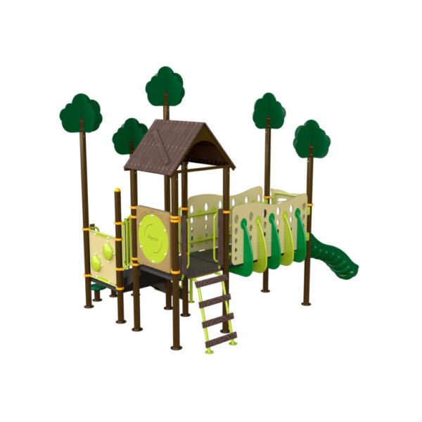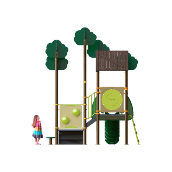 Juego premium especial que contiene; 1 resbaladilla recta, 1 escalera inclinada, 1 escaleras de fácil acceso, 1 patineta de equilibrio, 1 panel twister, 1 panel bongo. Acabado en pintura electrostática, libre de metales pesados, que garantiza una mayor durabilidad del producto. Componentes de plástico de alta densidad con protección UV.