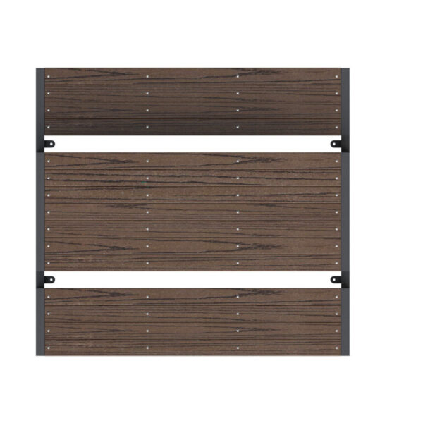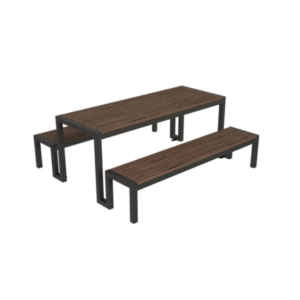 Mesa picnic de la línea Damero con madera plástica, con capacidad para seis personas.  Acabado en pintura electrostática, libre de metales pesados, que garantiza una mayor durabilidad del producto.